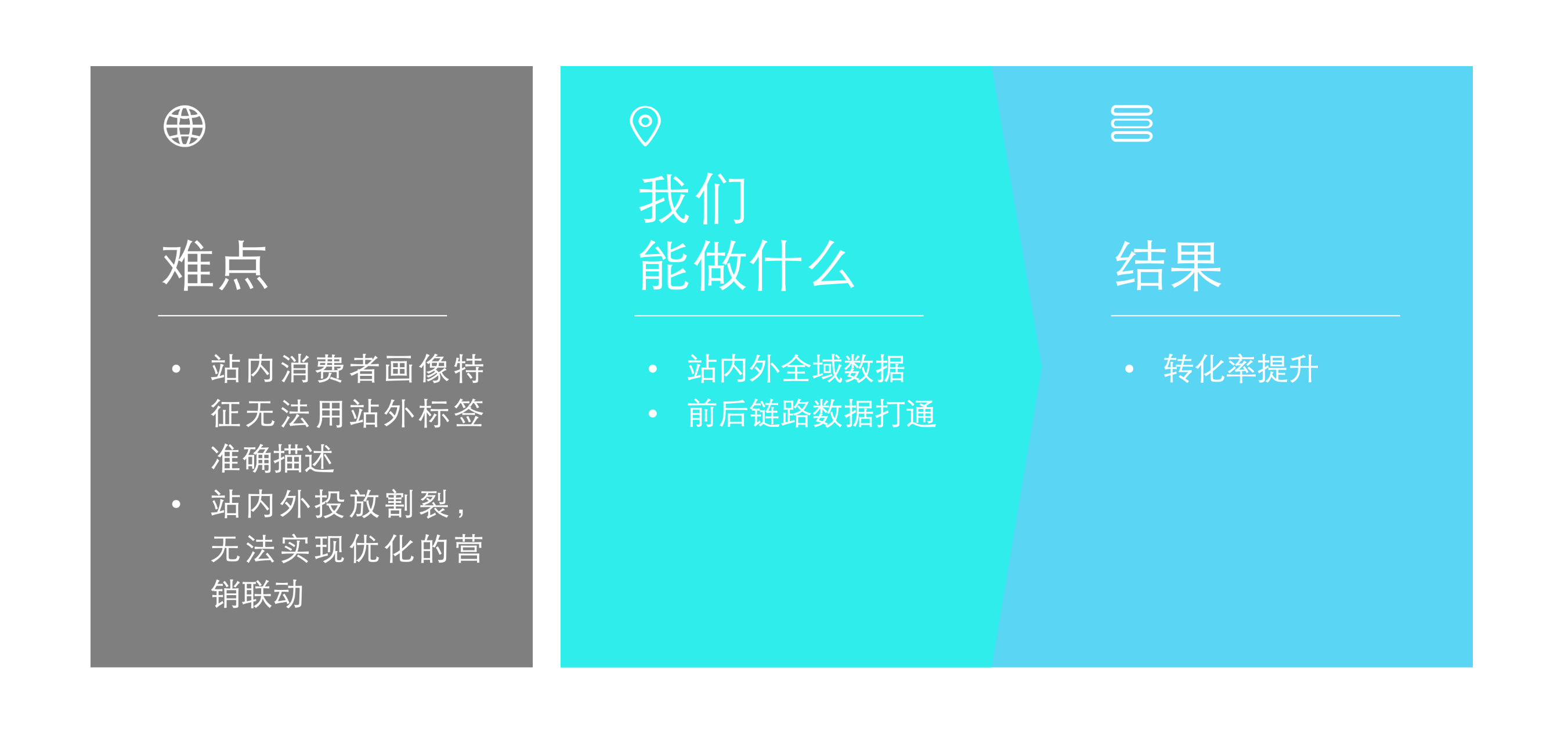 但实际情况并不尽如人意,现实中很多客户会发现,由于站内站外数据割裂,没有实时的数据反馈,导入的流量精准度低,媒体的算法也难以发挥作用。于是很多媒体无法获取到引流到电商平台后的转化数据,就难以对广告投放的效果进行衡量和优化,结果广告预算大把大把的花,但最后的ROI数据却很不理想。